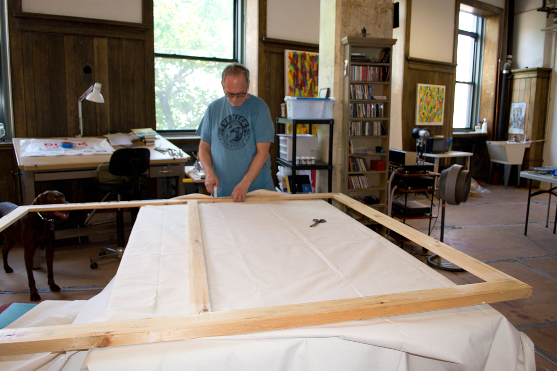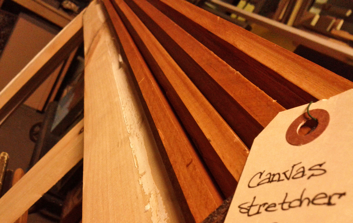 We recently salvaged several very large wooden stretchers from *unnamed major motion picture* (we’d tell you, but then we’d have to kill you..) Several local artists, like Victor Atkins shown below, have truly made art from the arts: